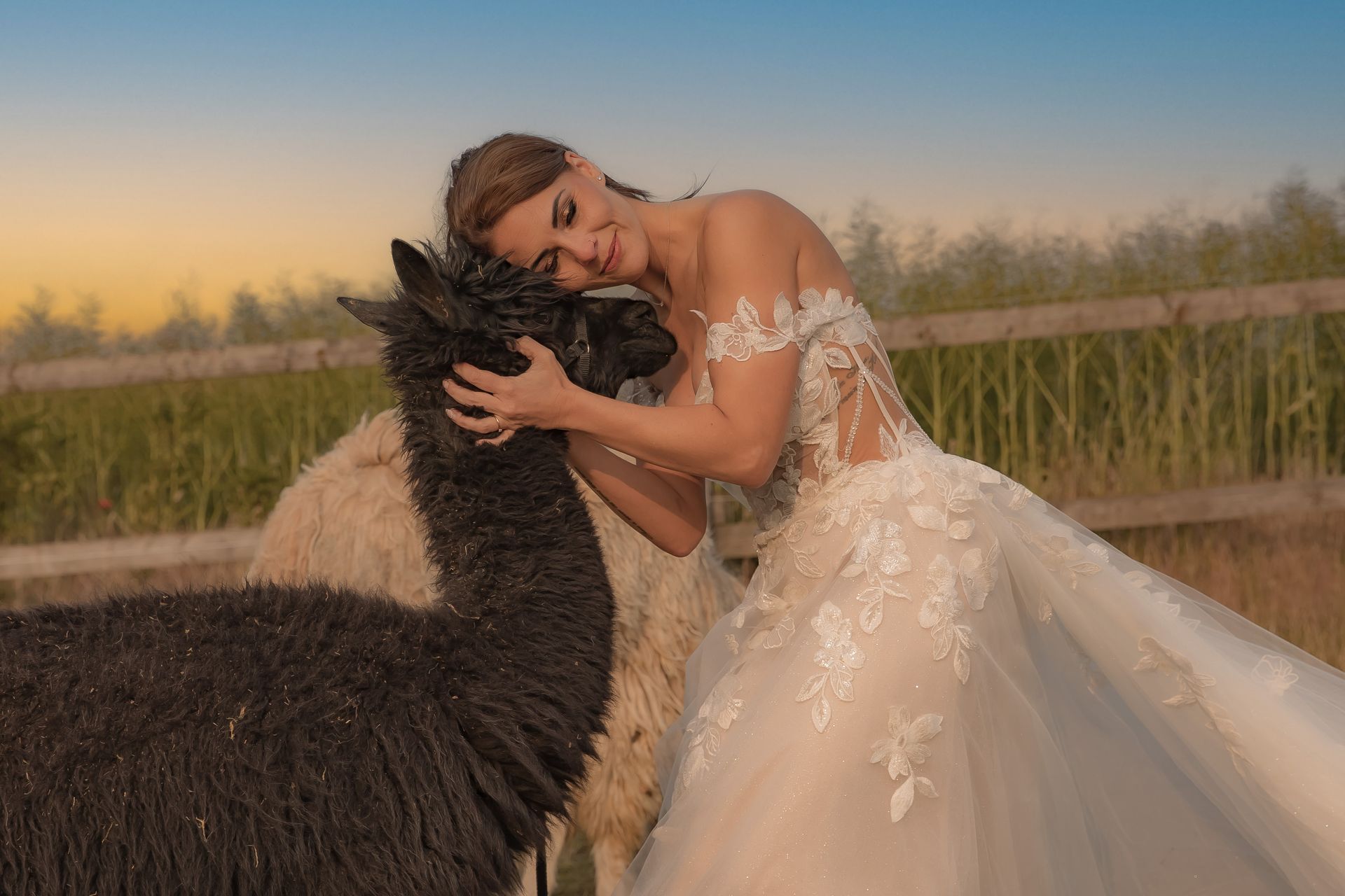 Für das Shooting berechnet die Fotografin 80,00 EUR und für die Alpakas mit 1 Helfer berechnen wir 100,00 EUR, zusammen also 180,00 EUR.