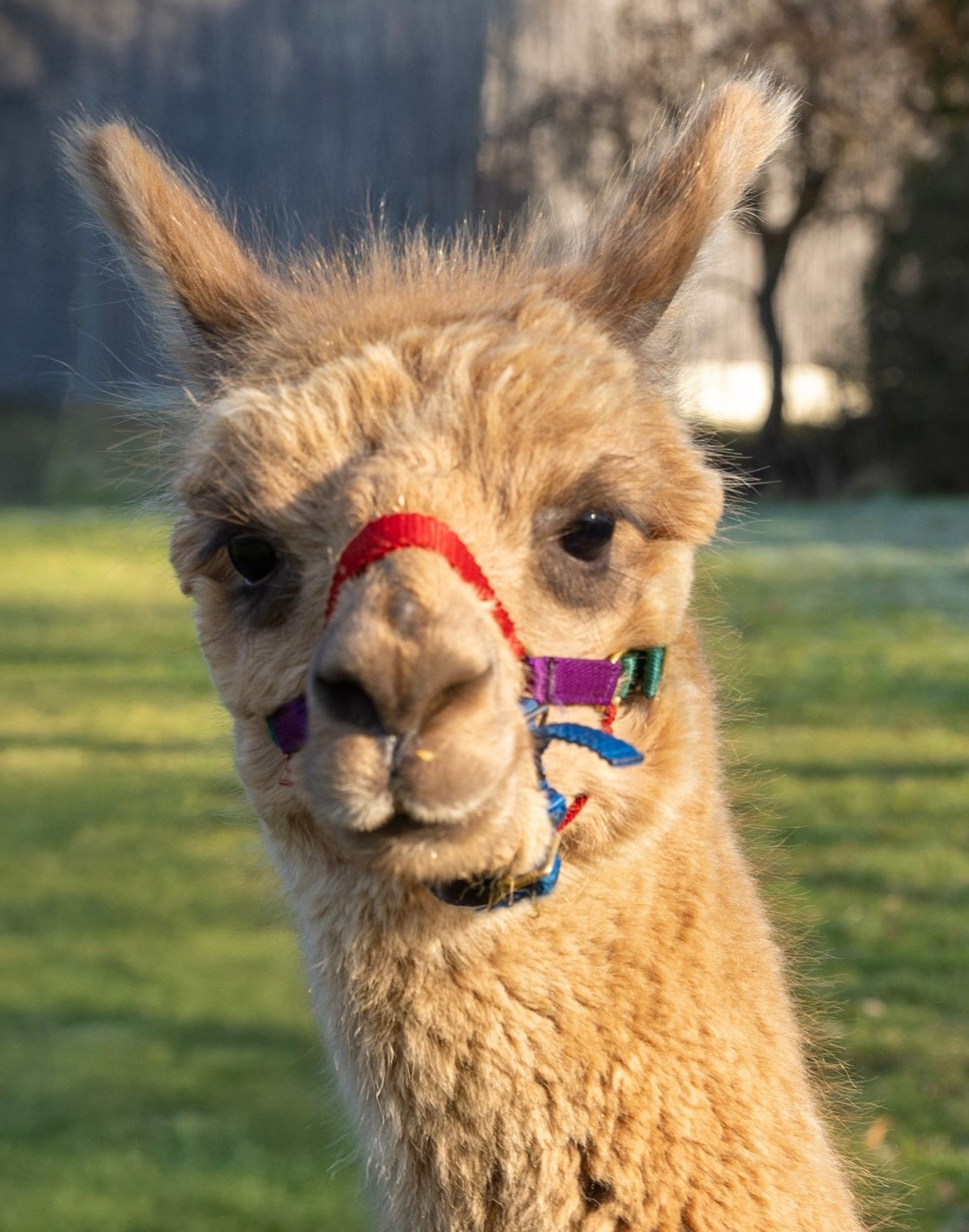 Karl, unser nunmehr 3-jähriger Lama-Hengst ist der Boss der Truppe. Er leitet gerne und unerschrocken die Wandergruppe an. Wenn Karl stehen bleibt, bleiben die Alpakas auch stehen und gehen erst weiter wenn Karl sich wieder in Bewegung setzt. Er ist leicht zu führen und nein, er spuckt nicht... jedenfalls nicht öfter als die Alpakas... ;-)